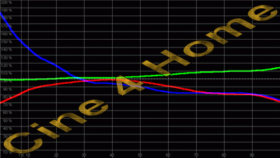 Bei der Farbdarstellung erreicht der Projektor ebenfalls ordentliche, wenn auch keine überragenden Ergebnisse: Hier ist in höheren Detailbereichen ein sichtbarer Farb- und Pegelverlust zu beobachten. Besonders in der höchsten DVD Farbauflösung 3,375 MHz, geht ein Teil der Farbe verloren.
