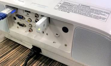 Selbst die Idee der kabellosen Bildübertragung wurde aufgegriffen, doch die technische Umsetzung ist nicht so gelungen, wie bei Epson: Einerseits kann das beiliegende Funk-Dongle nur an eine Quelle angeschlossen werden, andererseits werden nicht alle Bildformate und Frequenzen unterstützt.