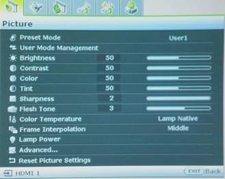 Am meisten überrascht hat uns das Menüsystem des W1500, denn BenQ Projektoren zeigten in dieser Domäne oft Schwächen. Doch nicht so beim W1500, auf Knopfdruck zeigt sich hier ein klar strukturiertes Menü, das ohne Verzögerungen auf die Fernbedienung reagiert. In unterschiedlichen Rubriken sind hier alle Parameter übersichtlich gegliedert.