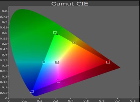 Unsere Grundfarbmessung bestätigt dem Projektor eine gute Abstimmung auf den Videostandard, zeigt aber auch eine leichte Schwäche in Grün. Dieses wurde optisch ein wenig in Richtung Gelb verschoben, um so mehr Helligkeitsreserven aus der Lampe zu kitzeln.