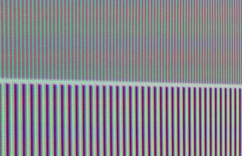 Überraschend gut schlägt sich der Epson TW6600 in Sachen Schärfe und Konvergenz. Zwar zeigt er die obligatorischen Farbsäume von einem halben Pixel Versatz, doch sind diese nicht stärker, als beim W1500. Zudem war seine Schärfe gut im gesamten Bild zu „mitteln“ ohne eine auffällig unschärfere Region. Dennoch ist er keineswegs als der schärfere Beamer einzustufen, denn seine optische Schärfe ist nicht ganz frei von weichen Übergängen.