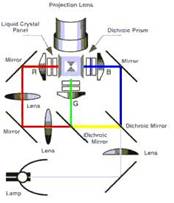 Beim Epson TW6600(W) handelt es sich um einen 3Chip (3LCD) Projektor, bei dem die drei Einzelbilder in den Grundfarben Rot, Grün und blau durch ein Prisma optisch übereinander und als ein farbiges Bild auf die Leinwand projiziert werden.