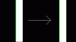 Eine für DLP-Projektoren schwierige Testsequenz: Ein weißer Balken bewegt sich schnell vor einem dunklen Hintergrund: Empfindliche Augen nehmen hier Farbblitzer an den Rändern des Objektes wahr: