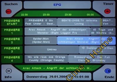 Per "OK"-Taste könne detaillierte Beschreibungen / Zusammenfassungen der Programme abgerufen werden. Die Sendungen können selbstverständlich auf der Festplatte