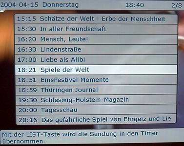 Auch die Festplattenaufnahme profitiert von der elektronischen Programmführung, hier kann der Anwender die gewünschten Programme für eine Aufnahme vormerken.
