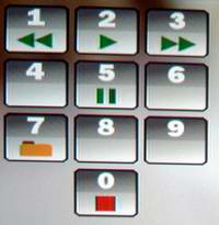 Wie schon unter 1.3 erwähnt, fehlen der Fernbedienung leider ein paar Navigationstasten. Um die Bedienung dennoch einfach zu gestalten, wird bei der Wiedergabe die Zehnertastatur umfunktioniert und die entsprechenden Funktionen im Bild eingeblendet. Nach einer kurzen Eingewöhnungszeit kennt der Anwender die Funktionstasten auswendig und kann die Wiedergabe ohne große Sucherei steuern.