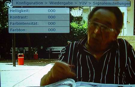Schon in unserem vorangegangenen Test haben wir der Grobi TV-Box eine ausgezeichnete Bildqualität bescheinigt. Ausgangsbasis hierfür ist eine Übertragung der Bildsignale über einen hochwertigen Komponenten-Standard wie RGB oder YUV. Bei der Grobi Box stehen beide wahlweise zur Verfügung und können im Setup-Menü aktiviert werden. Neben den hochwertigen Signalarten, von denen die Bildqualität sichtlich profitiert, erlauben diverse Einstellmöglichkeiten der Box auch eine optimale Anpassung auf die Projektoren-Eigenschaften. Alle wesentlichen Funktionen, wie Helligkeit, Kontrast, Farbsättigung und Farbton, sind vertreten. Bei der gleichzeitigen Nutzung eines Projektoreingangs für den Receiver und DVD Player ist dies ein besonderer Vorteil, da beide Geräte "gleich" abgestimmt werden können und so die Projektoren-Settings unangetastet bleiben. Zur Bildoptimierung bietet die Box sogar integrierte Testbilder, die zur Überprüfung der Einstellung auf den Schirm gebracht werden können: