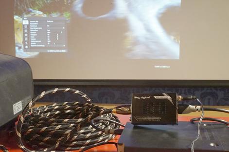 Signalstabilisierung bei langen Kabeln Da Cine4Home die führenden Projektoren-Hersteller oft auf Schulungen und Messeauftritten unterstützt, sind wir in der Praxis oft direkt von instabilen HDMI-Übertragungen betroffen. Nicht selten mussten wir schon so manche Nachtschicht vor Messebeginn einlegen, weil die brandneuen „Komponenten“ nicht so recht miteinander kommunizieren wollen. Das aktuellste Beispiel: Unsere Sony VPL-VW520 Präsentation auf den „Westdeutschen Hifi Tagen“ in Bonn im Oktober letzten Jahres: Ein Sony Bluray Player sowie zwei Sony 4K Server (1x und 1x FMP-X5) wurden über einen Sony Receiver, der gleichzeitig als Signalumschalter diente, über ein 12m langes HDMI Kabel mit dem Sony VPL-VW520 verbunden. Da alle Komponenten von einem und demselben Hersteller stammen, war von einer Inkompatibilität nicht auszugehen. Tatsächlich war die Verkabelung auch nach einer halben Stunde erledigt und der erste Funktionstest verlief viel versprechend: Sowohl der Bluray Player als auch der 4KMediabox liefen problemlos und ließen sich über den Receiver schnell und zuverlässig umschalten, das ist bei Messevorführungen von besonderer Wichtigkeit. Wir dachten schon, mit dem Aufbau fertig zu sein, doch weit gefehlt:
