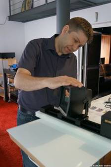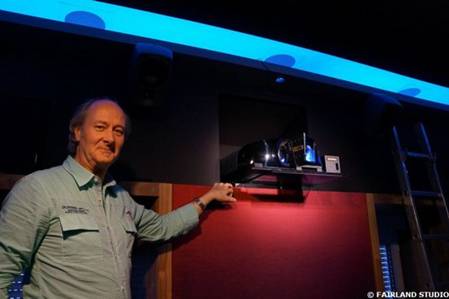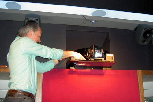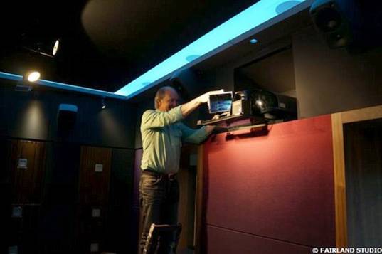 4.2 Montage Bevor wir mit den Bildtest durchführen könne, muss die Panamorph UH480 zuerst genau auf die Projektion angepasst werden. Diese Arbeit muss stets individuell durchgeführt werden, denn die optimalen Einstellungen hängen nicht nur vom Projektionsabstand und Bildgröße ab, sondern auch vom Projektionswinkel, Zoom und den optischen Eigenschaften des verwendeten Projektors. Diesmal legte der Chef des Hauses, Günter Henne, persönlich mit Hand an, gar nicht so einfach auf rund 2m Höhe.