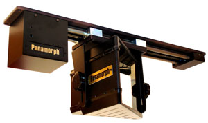 4.1 Ausstattung, Features und Verarbeitung Ein Anamorphot dient im Idealfall ausschließlich der Projektion von Cinemascope Material, bei herkömmlichen 16:9 Projektionen kommt er nicht zum Einsatz. Dieser Ansatz erfordert, dass die Zusatzoptik jederzeit bei Bedarf aus dem Lichtweg gefahren werden kann. Hier sorgt Panamorph für eine komfortable Lösung: Bei dem ATH2 Schlitten handelt es sich um eine vollmotorisierte Anamorphoten-Halterung, die bequem per Fernbedienung gesteuert werden kann. Wird der Anamorphot nicht benötigt, so wird er auf einer Schiene seitlich aus dem Lichtweg gefahren. Aktiviert man den Cinemascope-Modus, so bewegt sich die Optik millimetergenau wieder an die richtige Position vor der Beamer-Optik.