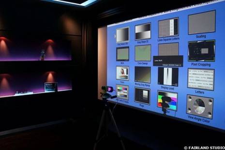 5.1 Farbreproduktion Wichtig für eine HighEnd Projektion ist eine akkurate Farbreproduktion. Die hängt maßgeblich von der Qualität des verwendeten Projektors ab und sollte nicht vom Anamorphoten beeinträchtigt werden. Eine etwaige farbliche Verfälschung wäre theoretisch möglich, wenn die verwendeten Gläser des Anamorphoten nicht farblich korrigiert sind und so bestimmte Wellenbereiche des Lichtspektrums absorbieren. Zur Untersuchung kalibrieren wir den Projektor vorher gemäß der Videonorm, was sich beim VPL-VW1000 gewohnt präzise gestalten lässt: