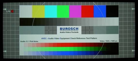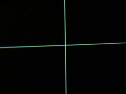 Auch bei der optischen Schärfe gilt: Bei sehr guten Projektoren kann sie kaum nachträglich verbessert werden. Allerdings sollte der Anamorphot sie auch nicht negativ beeinflussen, keine leichte Aufgabe bei einer horizontalen Streckung um einen Faktor von 1.33, wie sie durch die Optik bewirkt wird. Vor allem die Gefahr der "Chromatic Abberation", durch die Optik zugefügte Farbsäume durch unterschiedliche Brechungswinkel der Grundfarben, ist bei Anamorphoten besonders hoch und die meisten Varianten nicht frei davon. Um die Schärfe und Konvergenz möglichst adäquat zu überprüfen, spielen wir ein natives und möglichst schmales Gitterkreuz zu, dass die Schärfe und Konbergenz aller drei Grundfarben sofort sichtbar macht:
